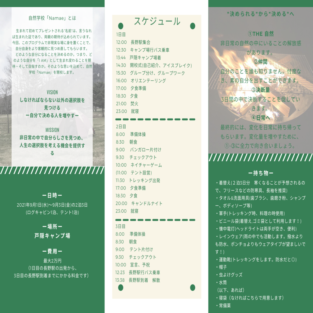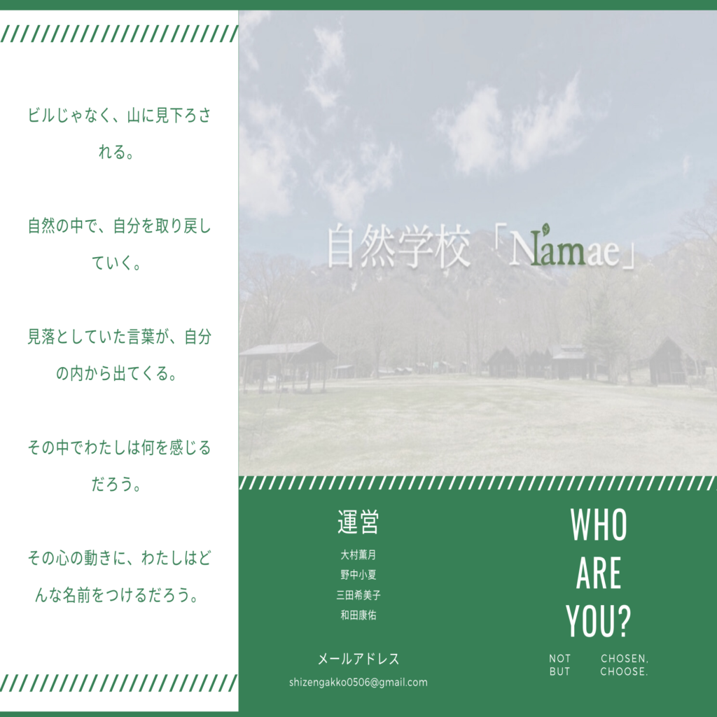 イベント名: 「自然学校 Namae」